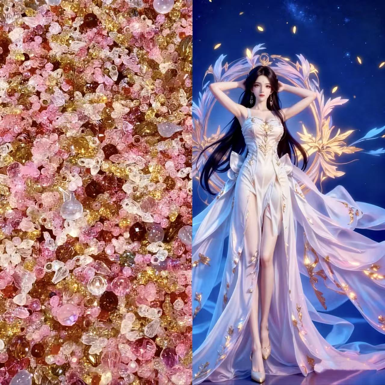 ピンクの淡さにグリーンの風を混ぜ、透き通った光がきらめくアクリルビーズ🎀