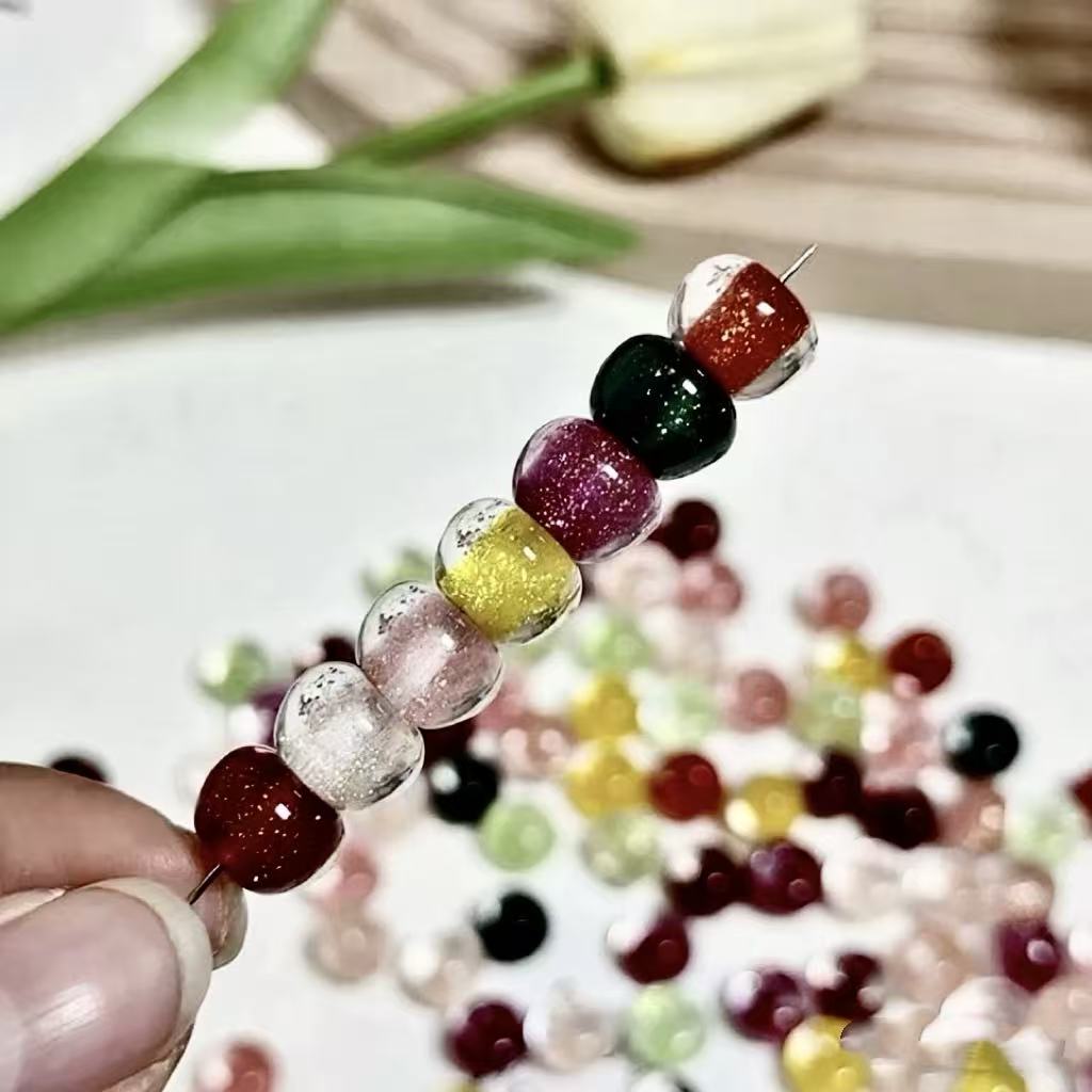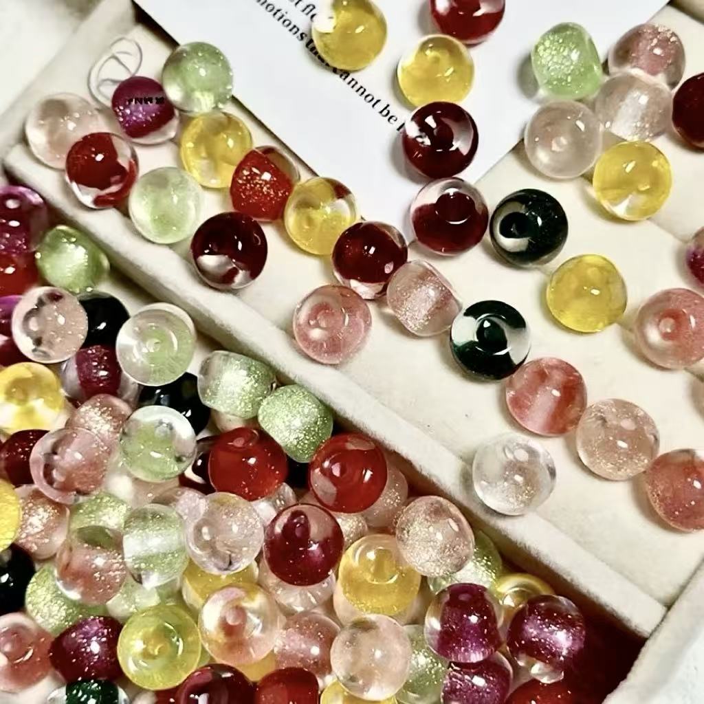 透き通った樹脂にキラキラの粉がまぶされた、まるで本物のお菓子ビーズ!