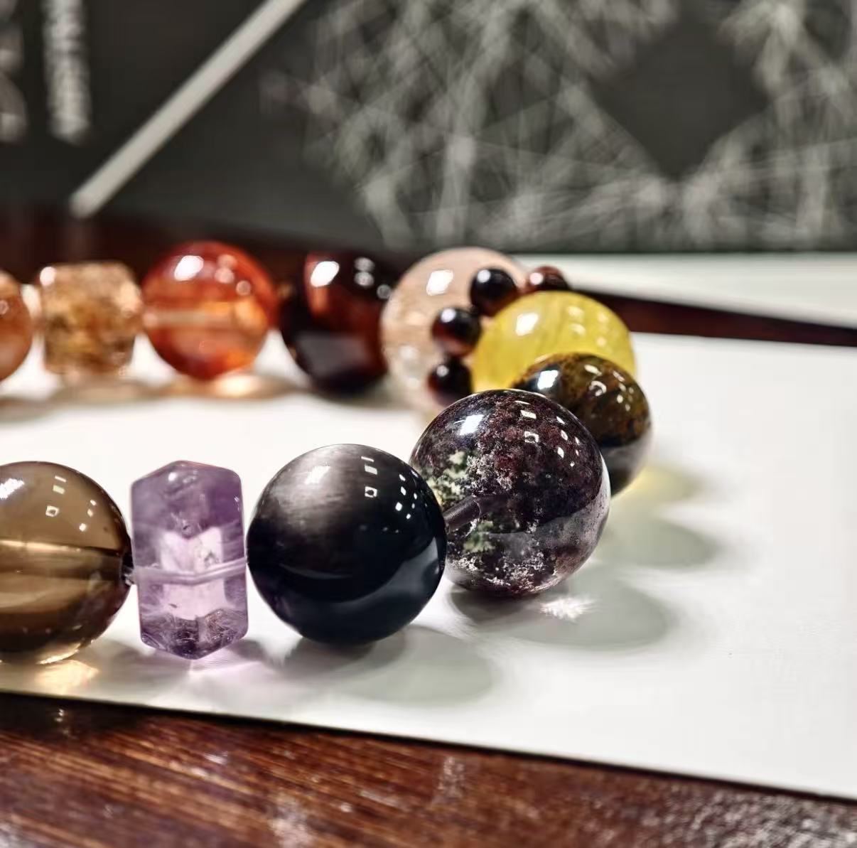 ✨これは単なるブレスレットではなく、クリスタルエネルギーの交響曲であり、大自然が手首に作り上げた秘境です。パープルゴーストクオーツの夢のよさ、グレームーンストの清涼感、ブラックゴールドスーパーセブンの豪華さ、レッドファントムクオーツの熱烈さ、レッドガイガーアイの鋭さ、タイガーアイの覇気、黄胶花イエローファントムクオーツの明るさ、スモーキークォーツのまろやかさ、ダブルポイントアメジストの機敏さ、シルバーオブシディアンの神秘さ、ファントムクオーツの深遠さ、ピーターサイトのファンタジックさ、繊維状イエローフローライトの輝き……一つ一つのクリスタルが独自のエネルギーと物語を携え、手首で独一無二の風景に交差します。これを身に着けると、まるで山川湖海の霊気、天地日月の精華をすべて手に入れたようで、多様なエネルギーがあなたと共に生活のあらゆる可能性を探求し、スタイルと雰囲気の二重のサポートの下、自分らしい素晴らしい一頁を描いていきます💎